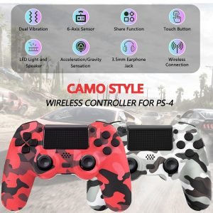 Wireless Game Controller Compatible with PS4,Analog Sticks/6-Axis Motion Sensor With Charging Cable- Red Camo
