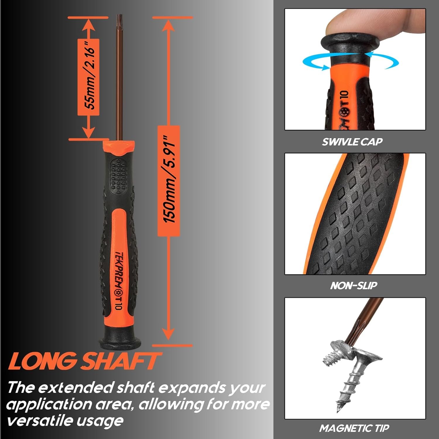 • Screwdriver: The non-slip handle offers a more comfortable grip and higher performance