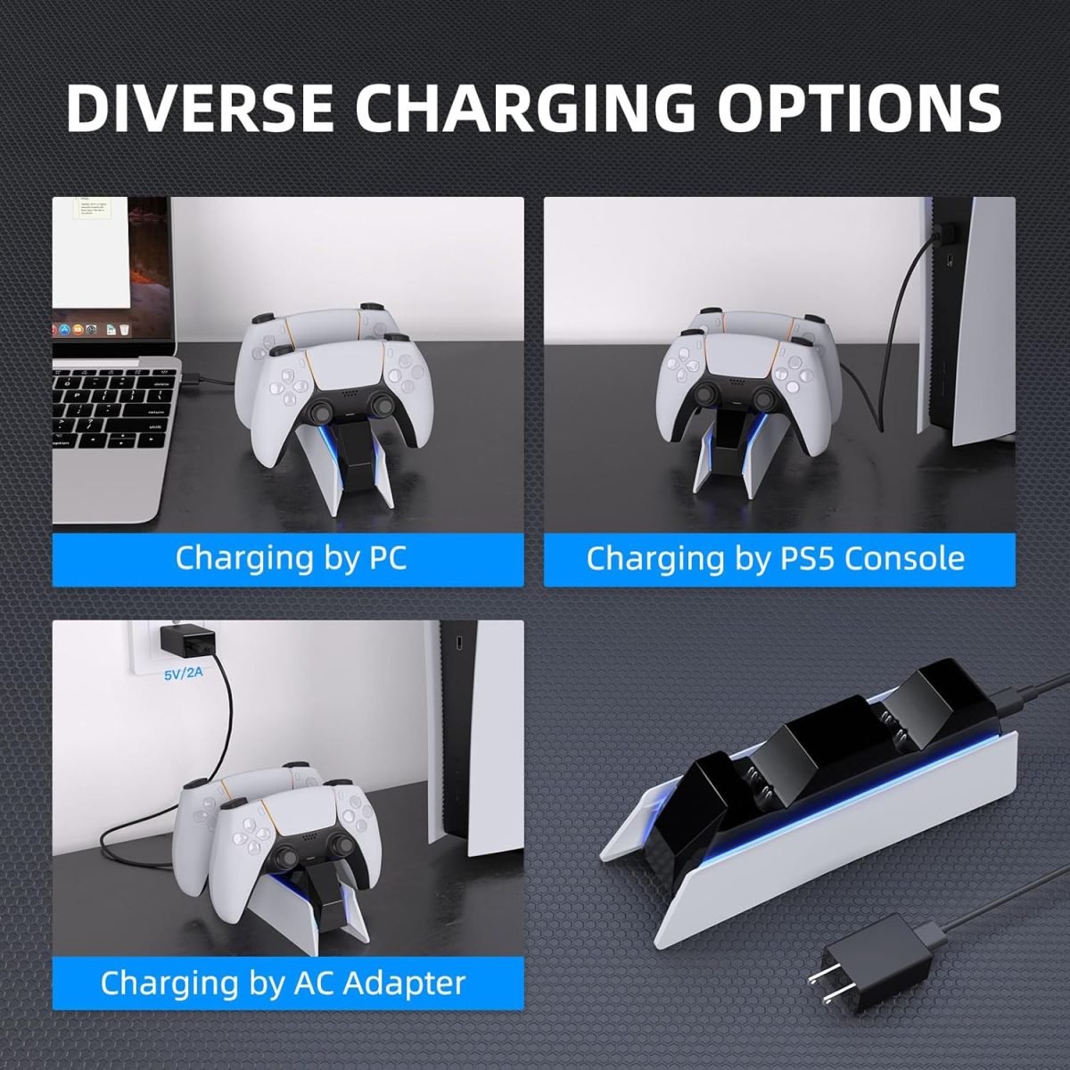 【Fast PS5 Charging Dock 】 This PS5 controller charging dock can fully charge 2 controllers at the same time in 3 hours.