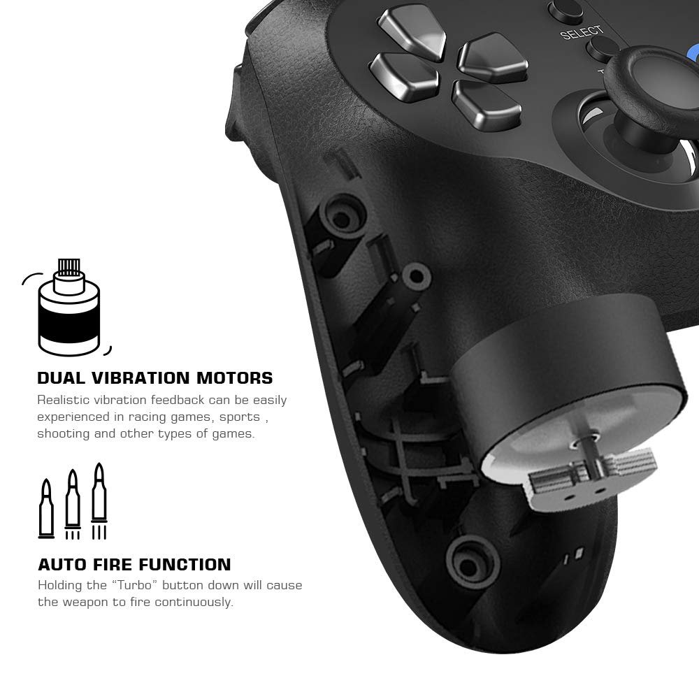 GameSir T1s uses a 32-bit MCU chip with a computing power of up to 48 million times per second. Built-in Realtek Bluetooth 4.0 solution and 2.4GHz wireless module, GameSir T1s has dual wireless connection. It is suitable for Android smartphones and tablets, as well as Windows PC, Steam and PS3, and supports various games.